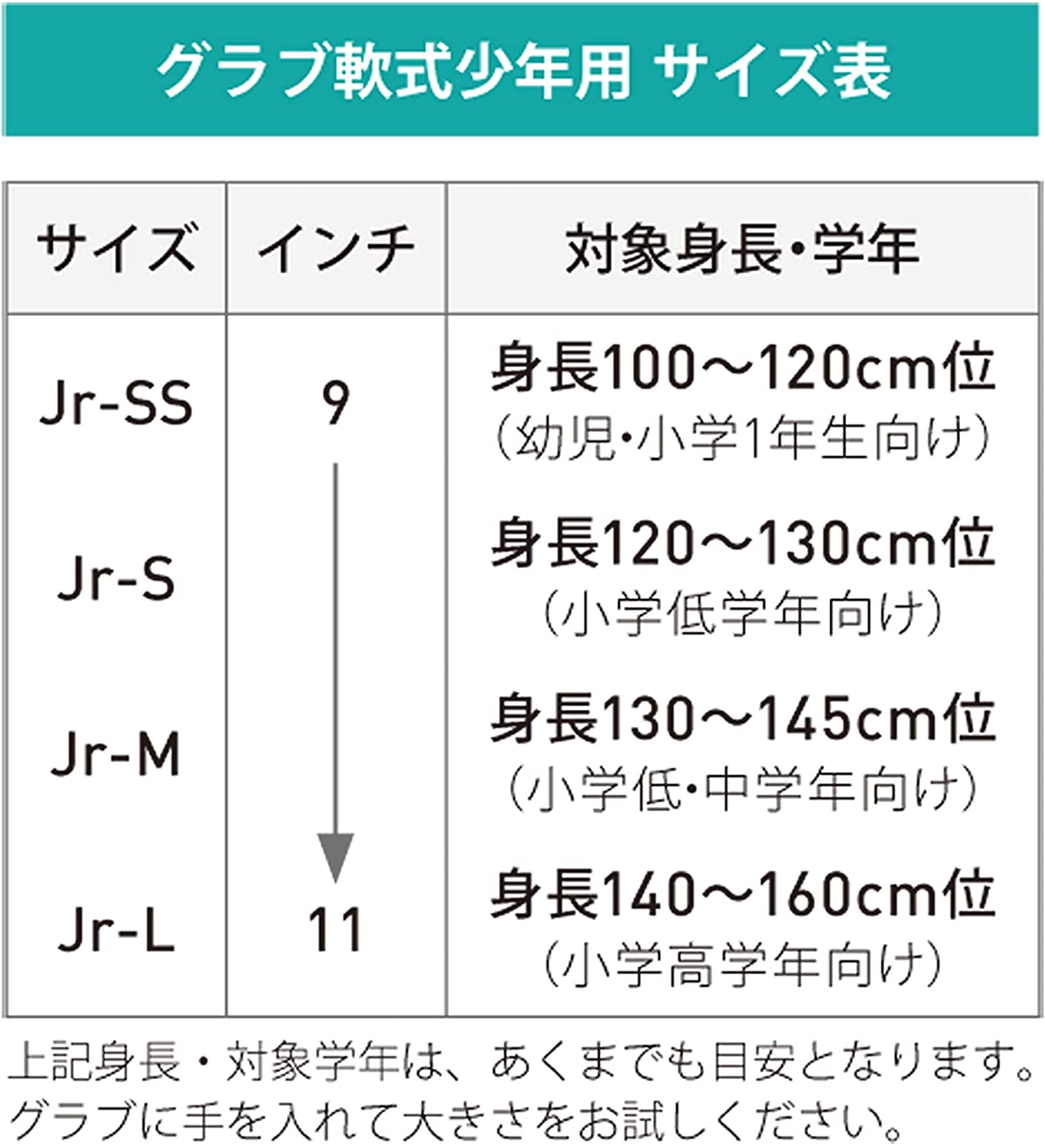 ジュニア用グラブサイズの目安