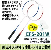 シャトル2個付属なので到着後すぐに楽しめる、バドミントン2本組 EFS-201W!家族や友達と楽しくバドミントン!!