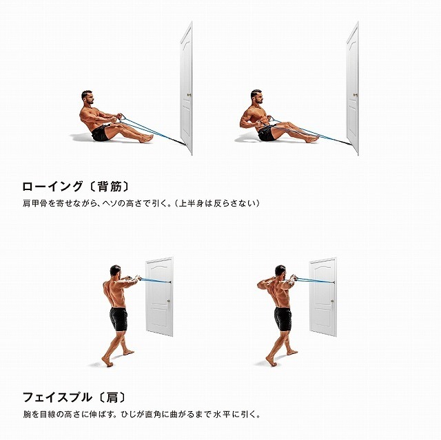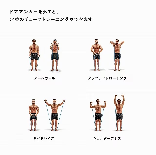 ドアアンカーを外すと、定番のチューブトレーニングができます。