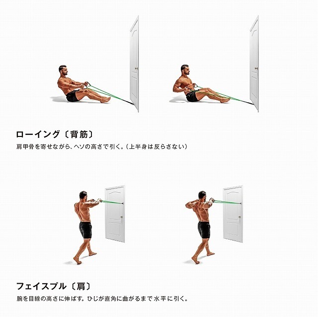 ドアアンカーを外すと、定番のチューブトレーニングができます。